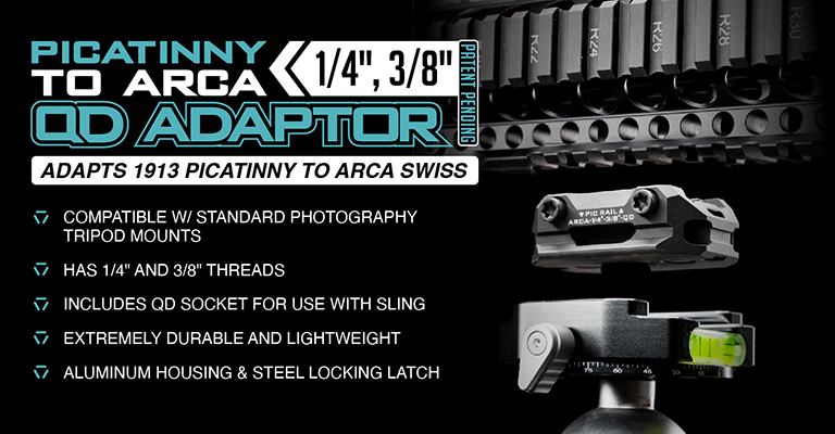 Si vous possédez déjà un bon trépied photo avec un support à rotule QD, montez simplement cet adaptateur Picatinny vers rail ARCA sur le garde-main de votre fusil et vous pourrez le fixer sur la rotule comme vous le feriez normalement avec un appareil photo.