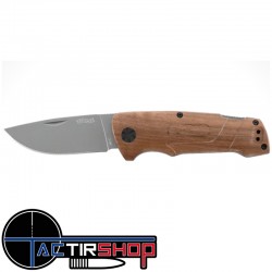 Couteau pratique possédant une lame Droppoint en acier 440C et une poignée en beau noyer finement poncé.