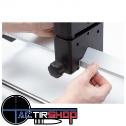 L'étau pivote à 180° et se verrouille tous les 6,5°, offrant une grande flexibilité pour positionner votre arme avec précision. Les mâchoires rembourrées permettent un réglage en hauteur de 5 cm (2 pouces) et un écartement de 7,5 cm (3 pouces) à 43 cm (17 pouces).