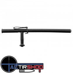 La poignée perpendiculaire rainurée assure une prise en main ferme, complétée par une dragonne. Il est livré avec un porte-tonfa en cordura, discret et pratique à fixer à la ceinture.